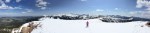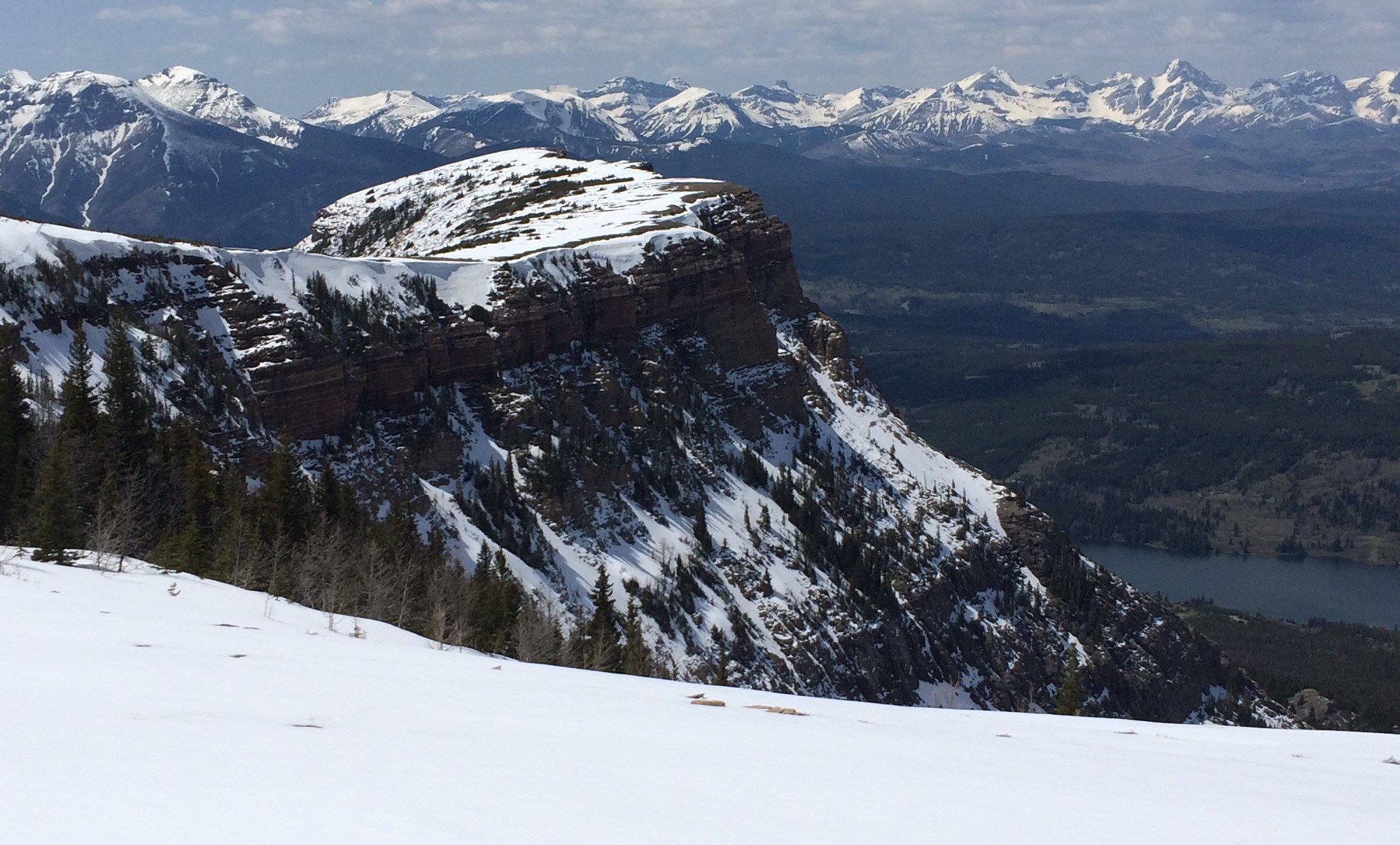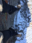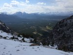 By this time, the snow was melting (it was hot, +15C up there). So you know what that means… Snowball fight! Which was great and all, but little did I know, my phone slipped from my pocket and landed on the ground. We walked away and made our way back to Table Mountain to grab our packs. When we got back, there was another group of hikers who were eating their lunch. We chatted for a few minutes. The one guy asked which way we came up because he didn’t see our tracks. We pointed to the small dip at the top and said we climbed up the trail. He chuckled and said “that’s not a trail”. Sandy and I looked at eachother and laughed. No wonder it was soooo difficult! The guy commented and said that it was probably the Climbers route that climbers take in the summer. We asked what path he came up and he pointed behind us (back towards the second summit) and said there’s a marker just over there.