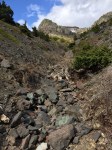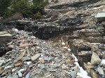 We made it to our bags (after nearly collapsing from all the walking back and forth up the same hill). We grabbed our packs and headed down the trail (which was well marked). This side of the mountain was completely different than what we climbed up on. It was steeper, more loose rock, and more mud. It was very slow going. We met up with the creek after traversing across the steep landscape and followed it nearly all the way down. We then branched off and headed up (shudder) only to turn around and head down the other side of the small (but large) hill. This path was VERY well marked and very well used.