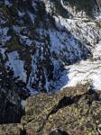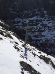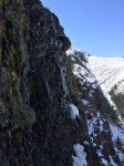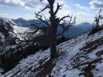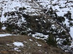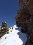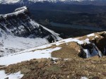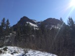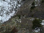 Shortly after getting into the clearing, we lost the path that we were supposed to be following (snow, remember?). We could see mountain goat prints, and so we decided that it would be a grand idea to follow those for a bit since they also led towards the direction we were going (again, probably not the best, but hey; it was warm, sunny, no wind… perfect). The footprints led us up a hill, and halfway down the other side where the gully was clearly visible. I had printed off a small contours map and trail guide to help us along our way. According to the map (which is incorrect), we were on the right path (which turns out wasn’t actually a path, but more a spacing between the shrubs that appeared to be a path in the snow). The goats came this way, so why couldn’t we?
