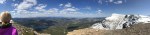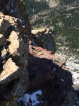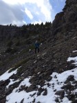 Once back up to Sandy, we followed the goat trail more. This time, Billy (the goat), decided he would like to tour us up a small, narrow, path through rocks. This was our first bit of a scramble and it was rather easy. At the top, there was a nice picture vantage point that overlooked the valley we just climbed up. Ahead of us was more of the same terrain; lovely.