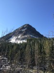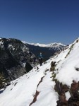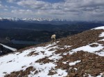 Once over the hump, the trail darted through the trees. It was met by some kind of cat tracks, my guess was a lynx since it was too high for other mountain cats (if someone knows something different, please do share!). Once through the trees, it dropped fast onto a small land bridge (again, full of snow). The path to the summit was actually quite easy. It was gradual, not slippery, and the scenery was amazing. We could see our lovely goat leaders just a few minutes away.