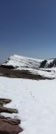 With champagne in our system, we decided that it would be a nice quick trip to the other summit so off we went! Looks are very deceiving. We started up, making sure to follow Beatrice’s trail because we knew there was small overhangs of snow. The small hump in between the two summits looked small but was actually just as steep as the stuff we climbed up. This wasn’t going to be a quick 10 minute jaunt.