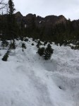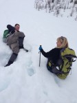 The return trip was quicker, but getting through that stuff we spent 30 minutes “walking” through was challenging, we fell through more times than stayed on the top. On the way down, we did encounter a loud crack followed by a rumbling. Some of the snow on the steep slopes above us decided to come and meet us. Luckily for us, we were past the point it slid down to. This was the part of the hike in which I turned to Chris and said, “I think you should walk a bit faster” and so we all picked up our pace and made pretty good time down the now icy trail.