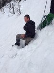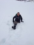 It took us about 30 minutes to go 50 feet. I was in the lead and every step I took, I sunk up to my waist in snow. It wouldn’t be bad if both legs sunk, but when you take a step and that leg sinks all the way up to where things should stay warm, the other one has a tendency to be left behind on top of the snow. Flexibility was my friend today (thankfully!). There were times when my right leg would be straight out in front of me (sometimes just above waist line) and my left leg would be under snow. Sandy kept worrying that I would injure myself but I think the few things that prevented that were that I was flexible, when I sank, I didn’t fight it and tense up (let your muscles go a bit limp so that when you encountered that rock at the bottom, and you did, your ankle had no weight or little weight bearing down on it so it wouldn’t snap like a tree in an avalanche), and I tried to ease myself down and not drop like a rock off a cliff (using the other leg to bear some weight as you fall through is good, at least for me).