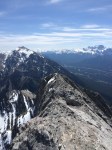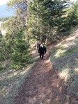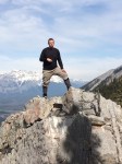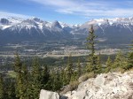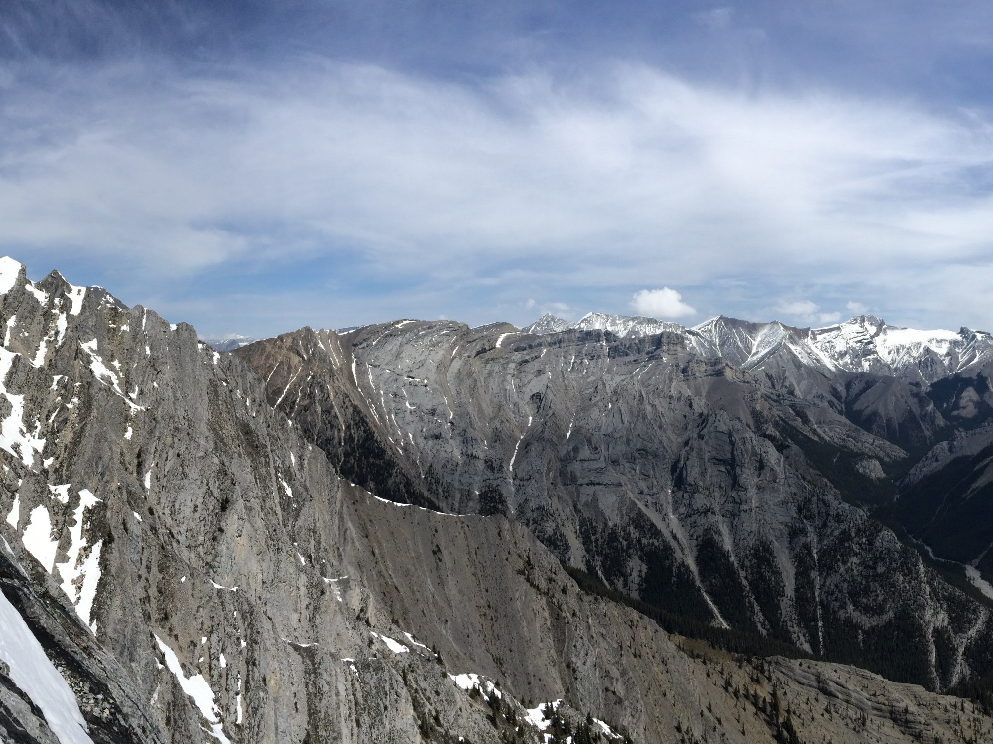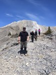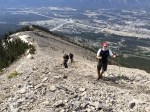 There was a fair bit of us on the trail since it had snowed a few days before; this made it slippery in sections but nothing too serious. When the trees broke, the view was amazing. Canmore was sprawled below and the emerald lakes and reservoir above; all enclosed with tall snowy mountains. Our mountain, and any to the east, were bare of all snow; we were liking the no snow for a change.