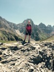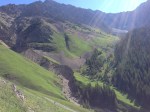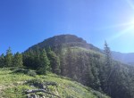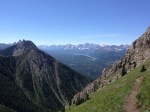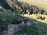 There were rock ridges that the path went up, so there was some very light scrambling involved within the first 30-40 minutes. After that, it was a steady uphill battle in a huge alpine meadow. You traverse along, going up and around the back of the mountain.