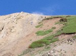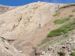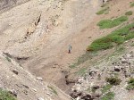 When we arrived to the back, it was a solid incline of scree and dirt (third application of sunscreen). The path traversed (steeply) up and through. Sandy and I continued and Chris relaxed in the some of the only shade we found. We got to the saddle and looked out over the trip we just made; it looked easier than it was…