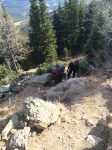 The hike started off on the old coal mine road. It’s a gentle hike until you get off the road and on the trail. It becomes steep and full of switchbacks. The hike is nice as it winds through the pine forest. It breaks and from there, and opens up into alpine meadows. During the summer, this would be filled with sheep.