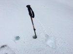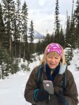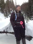 At the part where we entered the trail system, we started to head back down. We were going to cut through the forest and meet up with the parking lot; or so that was the plan. There were sections of snow that buried my pole; luckily, I didn’t sink as much as my pole did. After about an hour, we came to the cross country ski trails, the only issue was it was below us and we had to find a way to drop down 20 feet. In the summer, I am sure it is a very steep hill or at most, a small cliff; in the winter, it was a bit more deceiving. Somehow on the way down, I must have stepped on a sharp branch which tore right through my snowshoe (second pair toast, thankfully Costco accepted the return!). We had an easy walk back to the car until we met a moose. He was wandering the parking lot, licking the salt off the cars. He was quite uninterested in us as we walked past him.