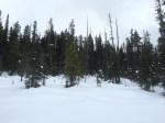 We started off at the last parking lot (the one after the Helipad parking). From there, we went up the service road to the helipad area but cut off into the bushes the first chance we got. We followed a creek bed up a small valley. I was breaking trail and soon got tired of wading in thigh high snow. It was tough as I am not used to it yet. I would take a step, sink up to my knees, take another step, sink up to my knees. It was a slow go, but worth it. As we got deeper into the woods (I was following a topographical map of the area so we could meet up with a trailhead system not far from where we were), the snow got deeper and deeper and the terrain became steep in sections (only for a few feet then it would level out).