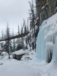 Once across the second time, we met up with a trail that went into the canyon. There we were met with a lot of ice climbers going up frozen Waterfalls. We watched for a few minutes and continued up the quickly narrowing Canyon. At one point the group stopped and I kept going, sans snowshoes. Picking my way across the mix of frozen patches and snow covered rocks was tricky but the view of the final waterfall was amazing. It was frozen on the outside but the rapidly moving water could be seen just behind. The Canyon was well worn from run off which made curtains of ice in sections.