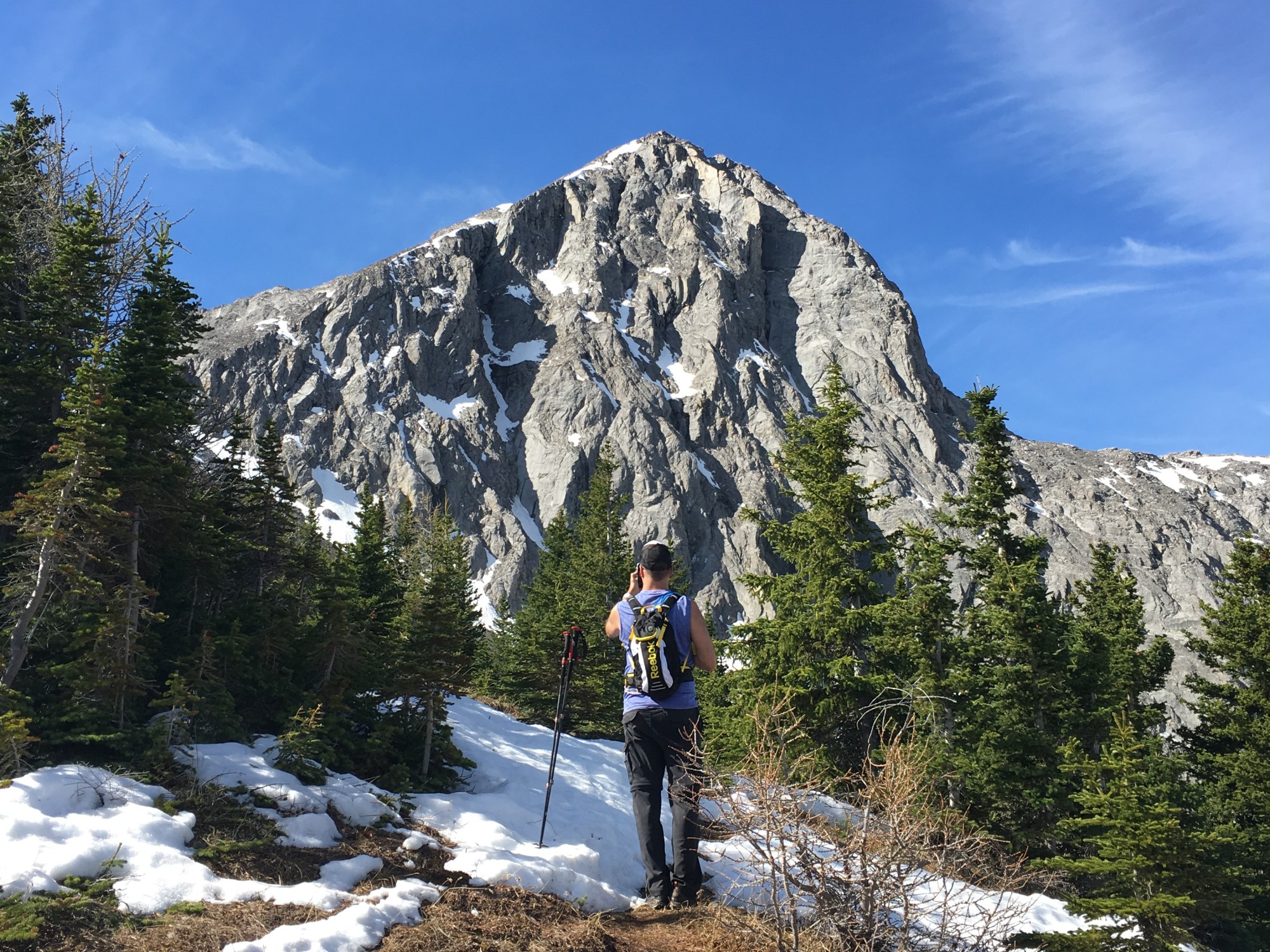 From the valley, we quickly gained elevation. Around 2km in, we encountered snow and lots of it. In some sections, it was waist deep; getting over or around it was difficult and energy consuming. The further up we climbed, the deeper and voluminous it got. Being out first uphil hike of the season meant our stamina wasn’t quite there yet.