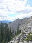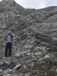 On the way down, we did a ridge walk that turned into a scramble down; another great scramble down. We met up with a secondary trail that wound its way through an avalanche and runoff gully. We came across a dried up waterfall. Curtis and Sheldon decided to go around and I took one look at it and knew I could climb down. Ryan followed his own path but followed me.