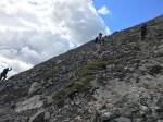 The hike through the forest wasn’t overly difficult. The last push up to the summit was harder. It was a scramble, but a great scramble. Looking at the summit from the saddle, it looked quite steep and one big cliff. Close up, it was pretty steep but definitely doable. We did encounter a marmot sunning on the rocks. He was curious what we were then scampered off.