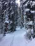 The trail was very well worn so we didn’t need spikes or snowshoes at all. It wound through the forest for a very easy hike (took us probably 4 hours round trip). We encountered a few other outdoorsy people (some were cross-country skiing, some were snowshoeing). The trail must be very popular in the summer because it’s fairly wide in most sections. It’s an easy, quick, winter hike if you are up for the drive from Calgary (around 2 hours).