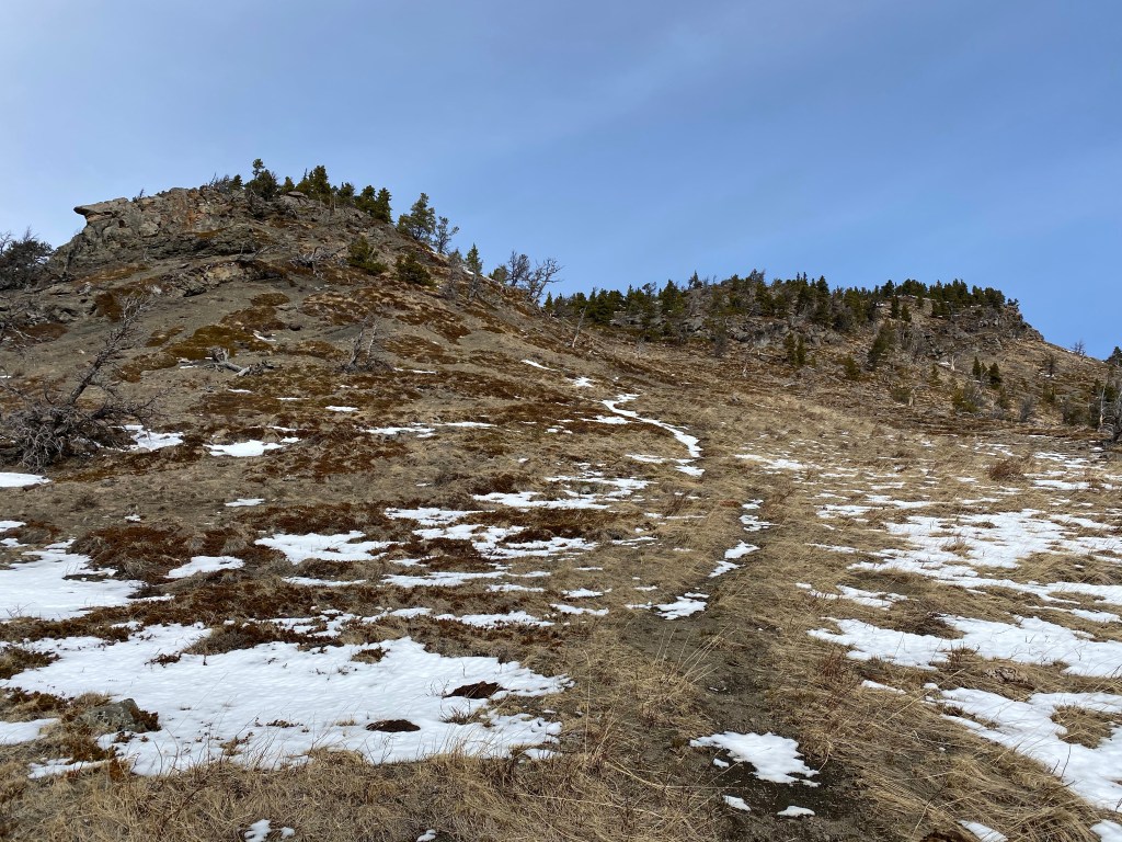 A nice 14km hike on a warm spring day! Lots of up then lots of down. Snow in areas but relatively dry. Did this April 2, 2021. The full loop was almost in sight but we did a detour and came back almost the same way we went up.